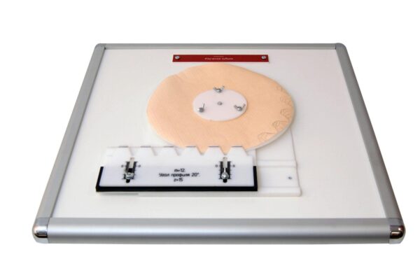 Учебный стенд "Изучение зубьев" предназначен для изучения зубьев, в частности эвольвентных. Комплекс выполнен в настольном ручном исполнении. Позволяет моделировать процесс формообразования зубьев.