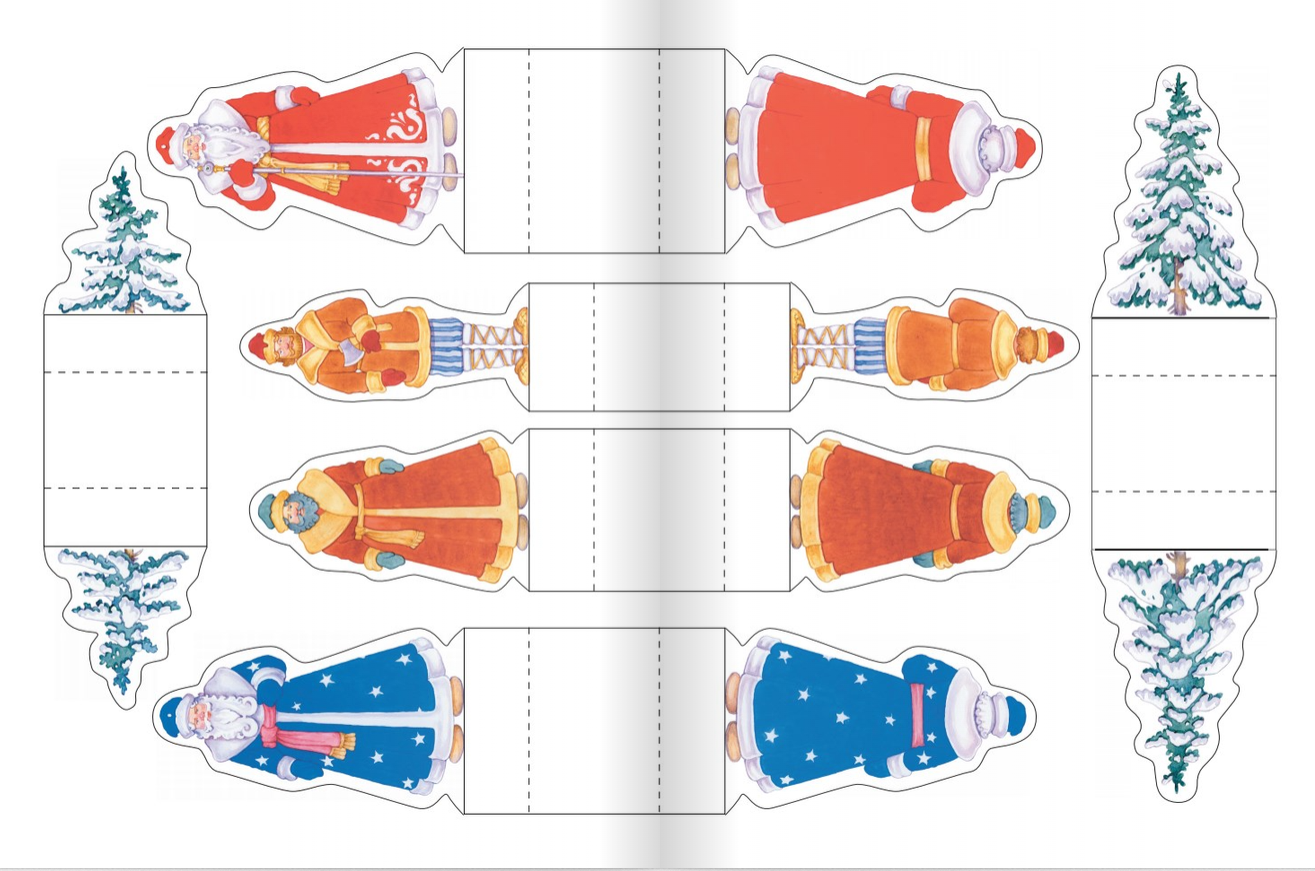 Перед вами книжка-игрушка из серии «Сказка на ладошке», которая предназначена дошкольникам — даже ещё не читателям, а слушателям. Прочтите сказку «Два Мороза» ребёнку вслух и рассмотрите иллюстрации. В середине книжки вы найдёте лист с выкройками сказочных героев. Вместе с ребёнком аккуратно отогните скрепки, извлеките лист и вырежьте ножницами фигурки с основой-подставкой. Затем согните их по пунктирным линиям и склейте переднюю и заднюю части. Теперь с помощью забавных героев ваш ребёнок сможет разыграть только что прочитанную сказку или придумать своё продолжение сказочной истории.