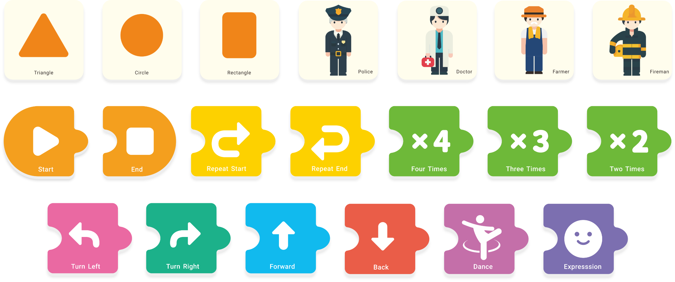 Дополнительно имеется программное обеспечение для планшетов и смартфонов для графического программирование робота, управление роботом (типа джойстика), составление и проигрывание музыки.