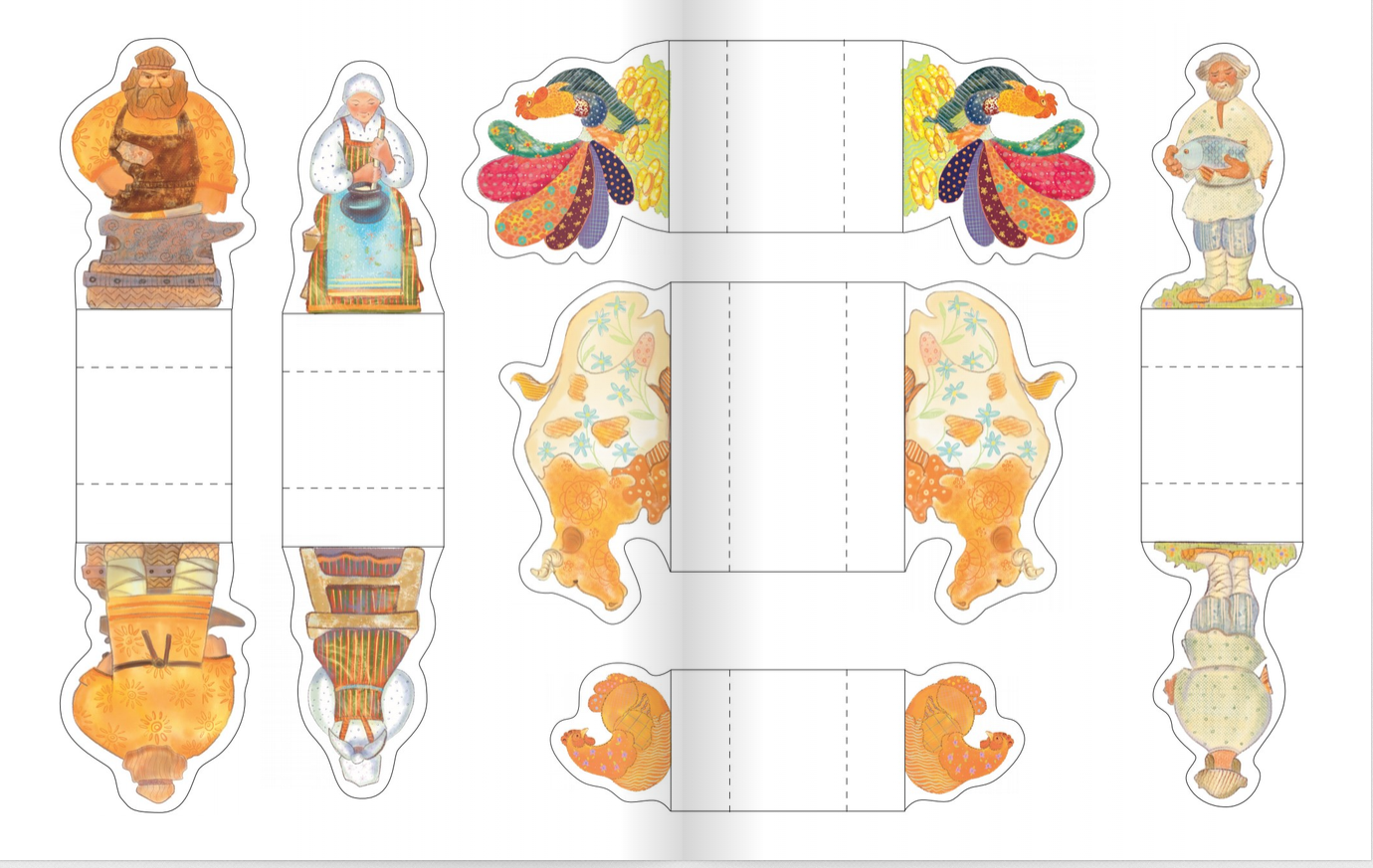 Перед вами книжка-игрушка из серии «Сказка на ладошке», которая предназначена дошкольникам  — даже ещё не читателям, а слушателям. Прочтите сказку «Петушок и бобовое зёрнышко» ребёнку вслух и рассмотрите иллюстрации. В середине книжки вы найдёте лист с выкройками сказочных героев. Вместе с ребёнком аккуратно отогните скрепки, извлеките лист и вырежьте ножницами фигурки с основой-подставкой. Затем согните их по пунктирным линиям и склейте переднюю и заднюю части. Теперь с помощью забавных героев ваш ребёнок сможет разыграть только что прочитанную сказку или придумать своё продолжение сказочной истории.