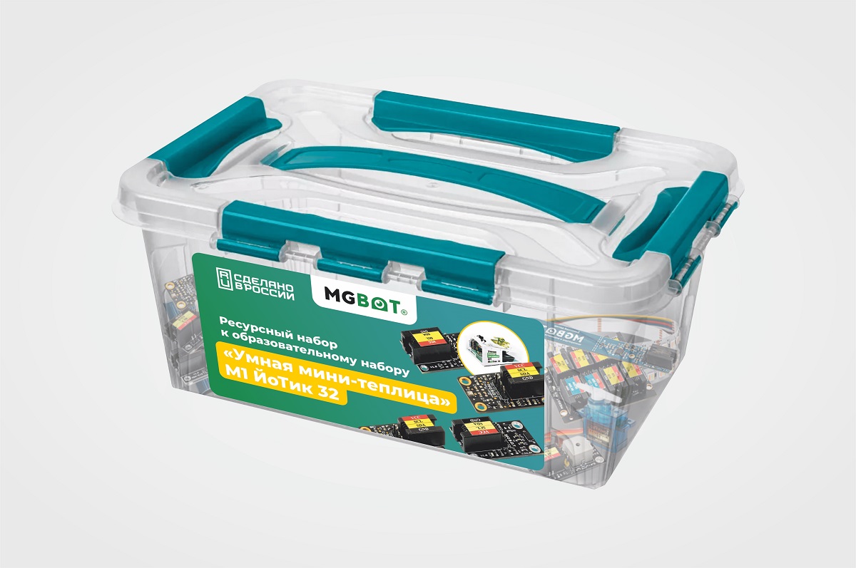 Ресурсный набор для образовательного набора «Умная мини-теплица» М1 ЙоТик 32 предназначен для тех, кто хочет углубленно освоить полный цикл технологии умного выращивания растений. Данный комплект помогает пройти путь от простого знакомства с возможностями умной теплицы до полноценной разработки собственной системы мониторинга и автоматического управления микроклиматом роста растений.