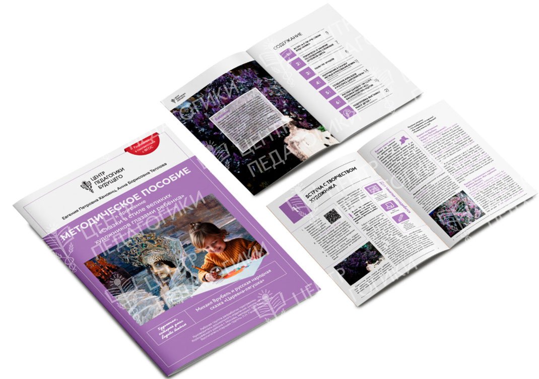3. Печатное издание «Методическое пособие «Сказка Маша и Медведь в стиле Василия Кандинского глазами ребенка»; 4. Печатное издание «Методическое пособие «Сказка «Царевна-Лягушка» в стиле Михаила Врубеля глазами ребенка»;