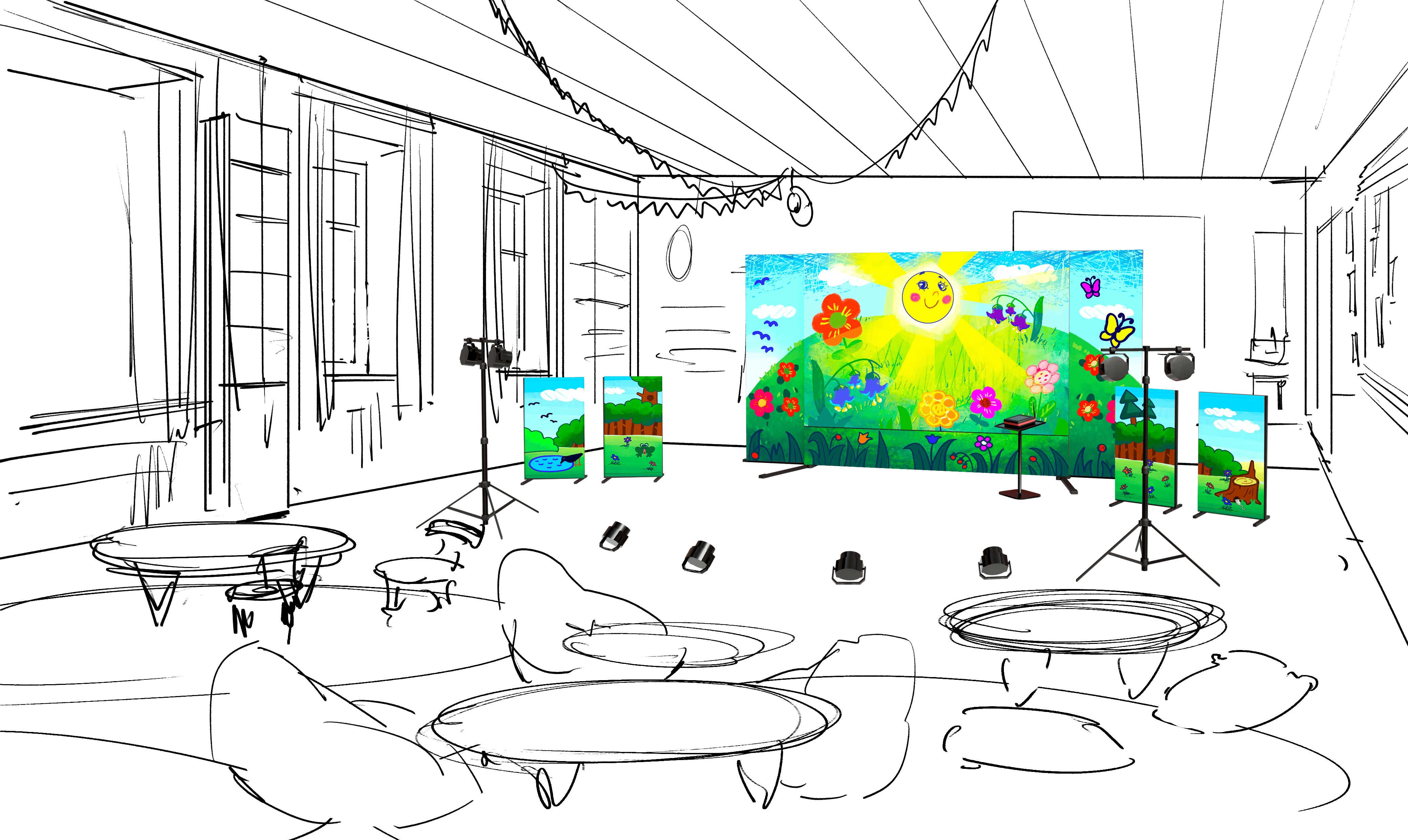 Сцена-эстрада. Подходит для постановки концертов, танцевальных шоу, для инклюзивного творчества, в том числе для детей с нарушением опорно-двигательного аппарата.